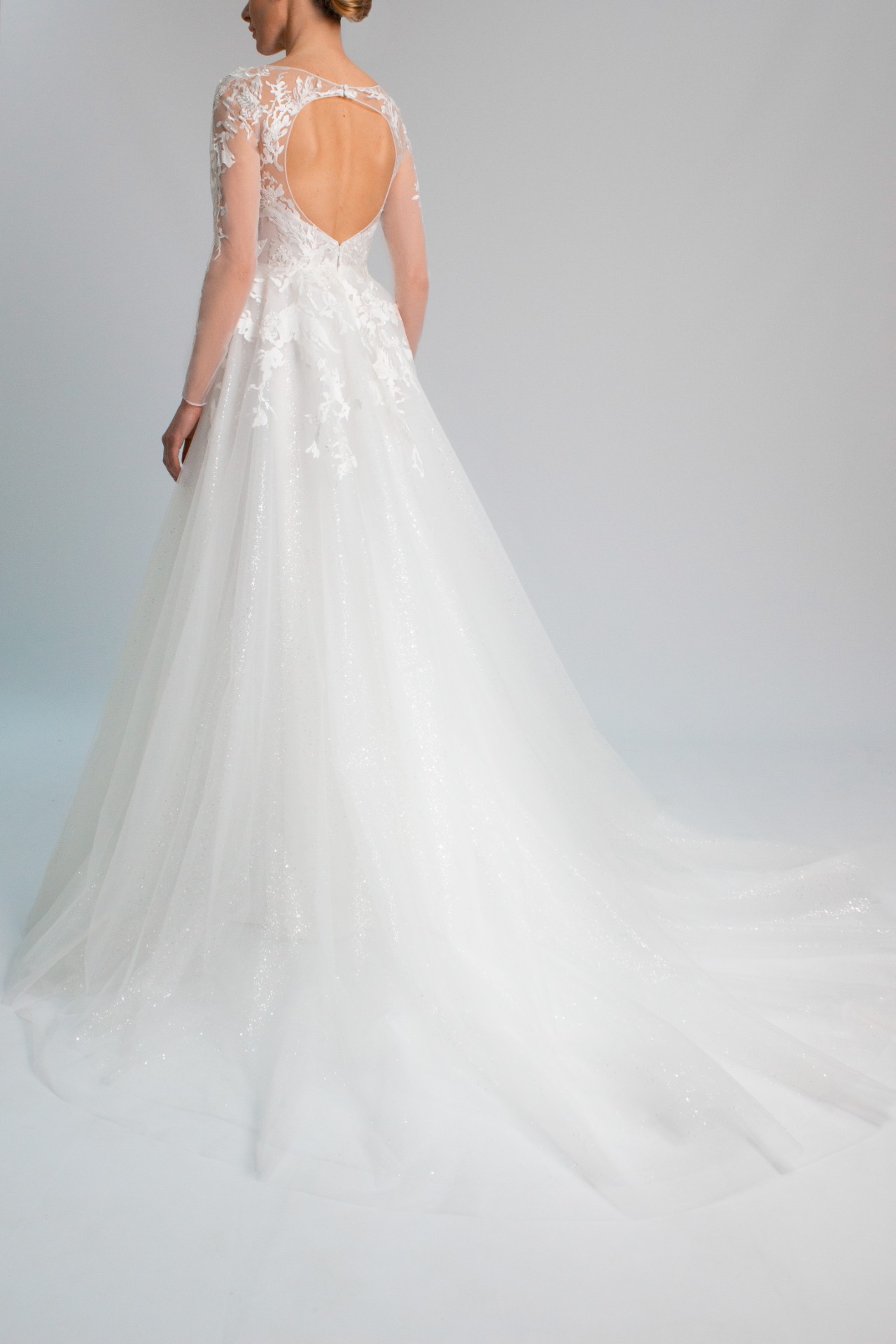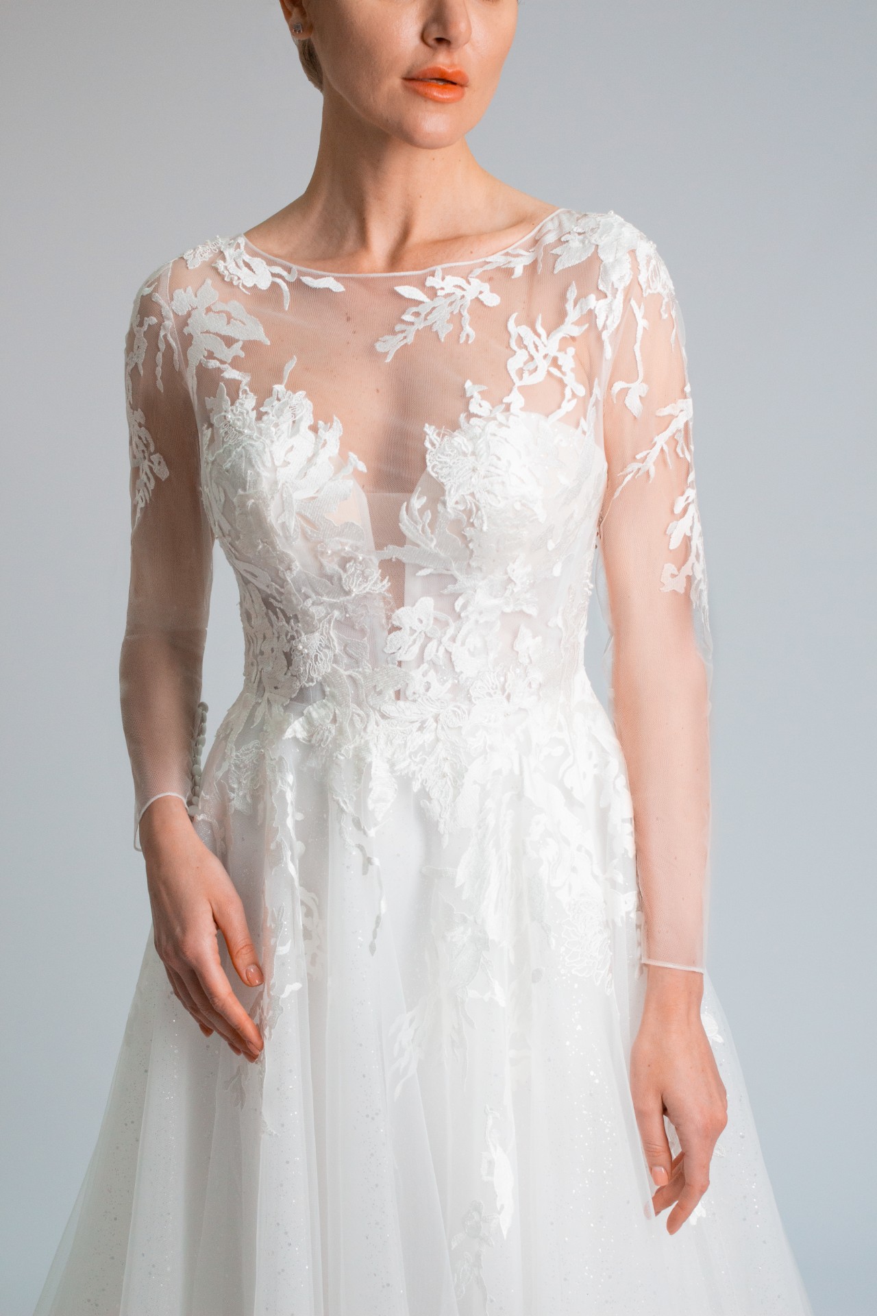 This stunning Long Sleeve Tulle and Lace A-line Wedding Dress #10041 is the perfect choice for any bride looking for a timeless and elegant look on her special day. The delicate lace detailing and flowing tulle skirt create a romantic and ethereal feel, while the A-line silhouette flatters any body type.