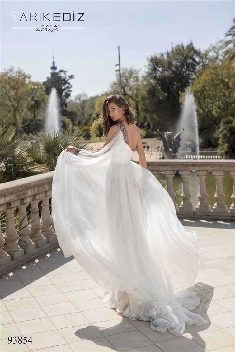 This stunning Beaded One Shoulder Chiffon A-Line Wedding Dress Model 93854 is the perfect choice for any bride looking for a timeless and elegant gown. The delicate beading on the one shoulder adds a touch of glamour, while the flowing chiffon fabric creates a romantic and ethereal feel.