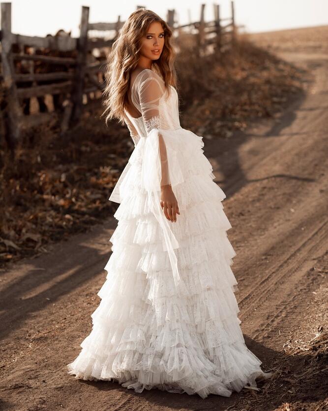 The Azalia Long Puff Sleeve Lace Tulle A-Line Wedding Dress is a stunning choice for any bride-to-be. This dress is designed to make you feel like a true princess on your special day.