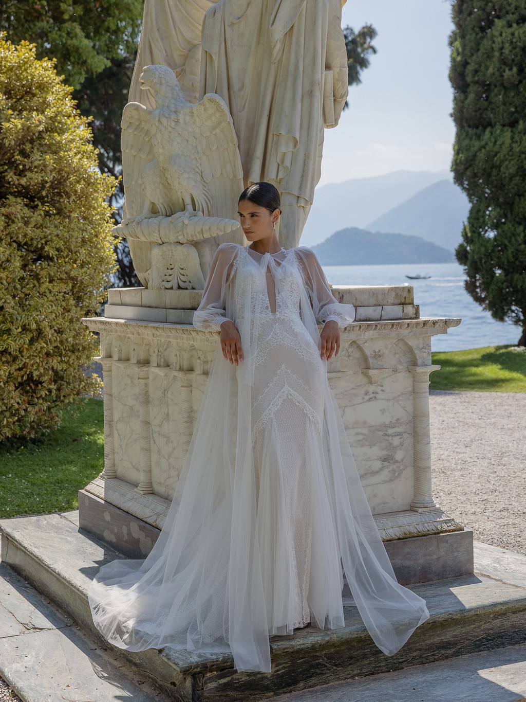 - The V-neckline is both elegant and modern, making it a perfect choice for brides who want to stand out.