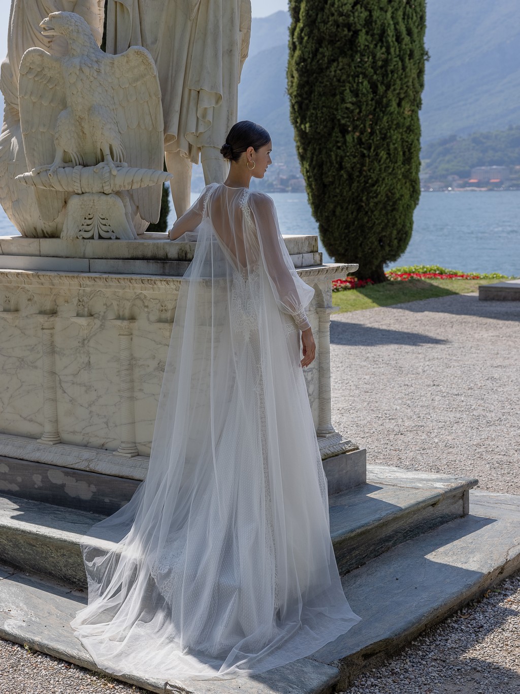 - The tulle skirt creates a soft and dreamy feel, perfect for a romantic wedding.