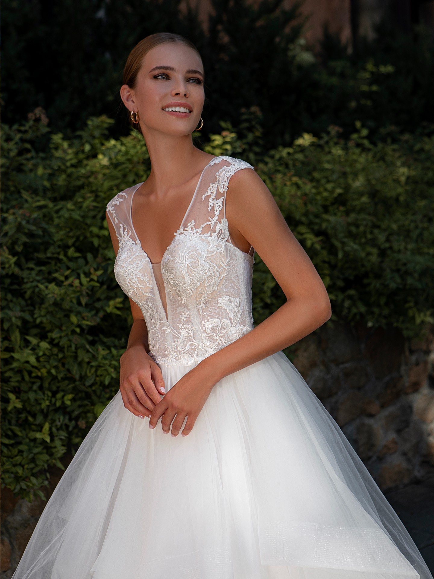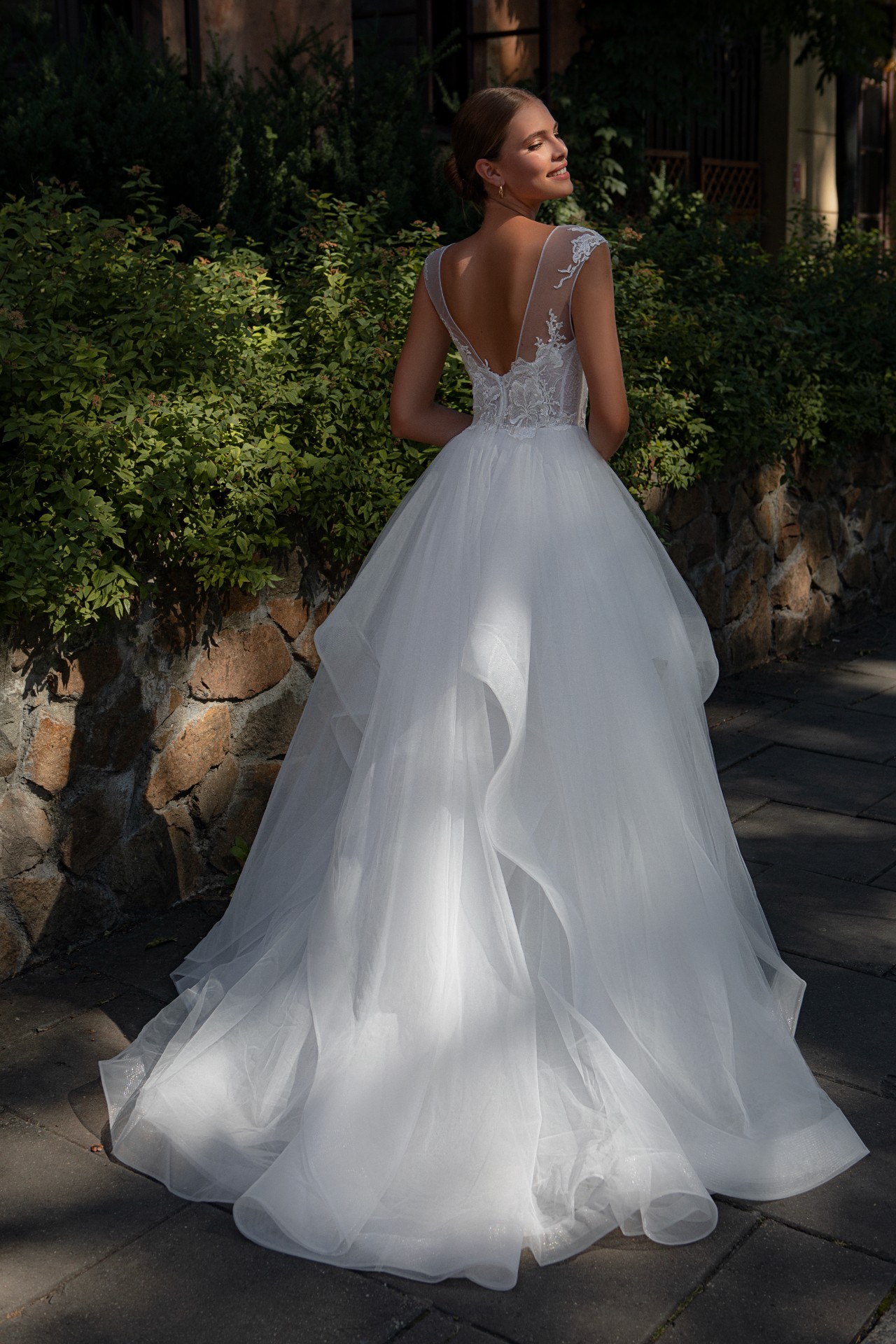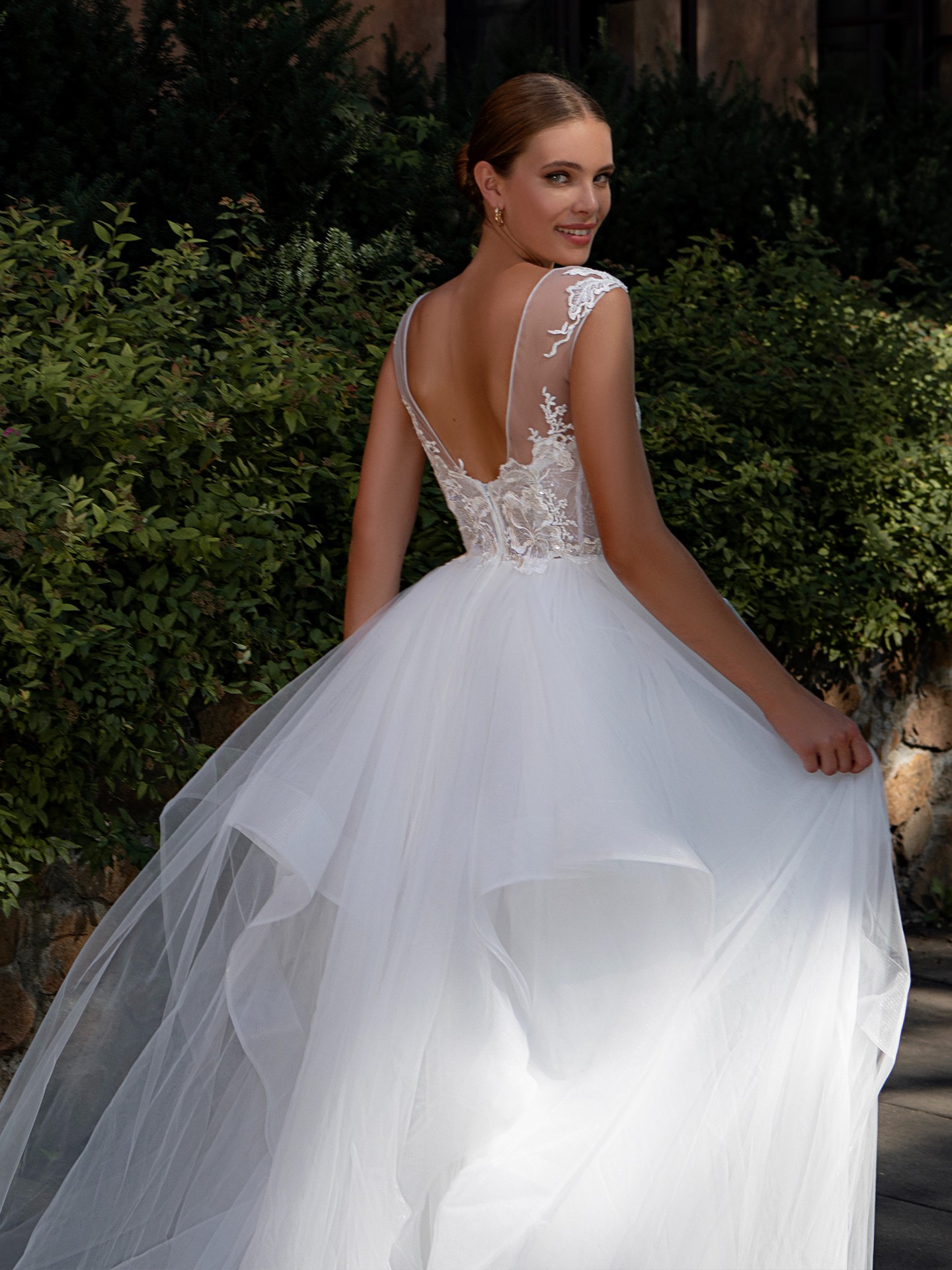 - The tulle and lace fabric is soft and lightweight, allowing the bride to move and dance with ease.