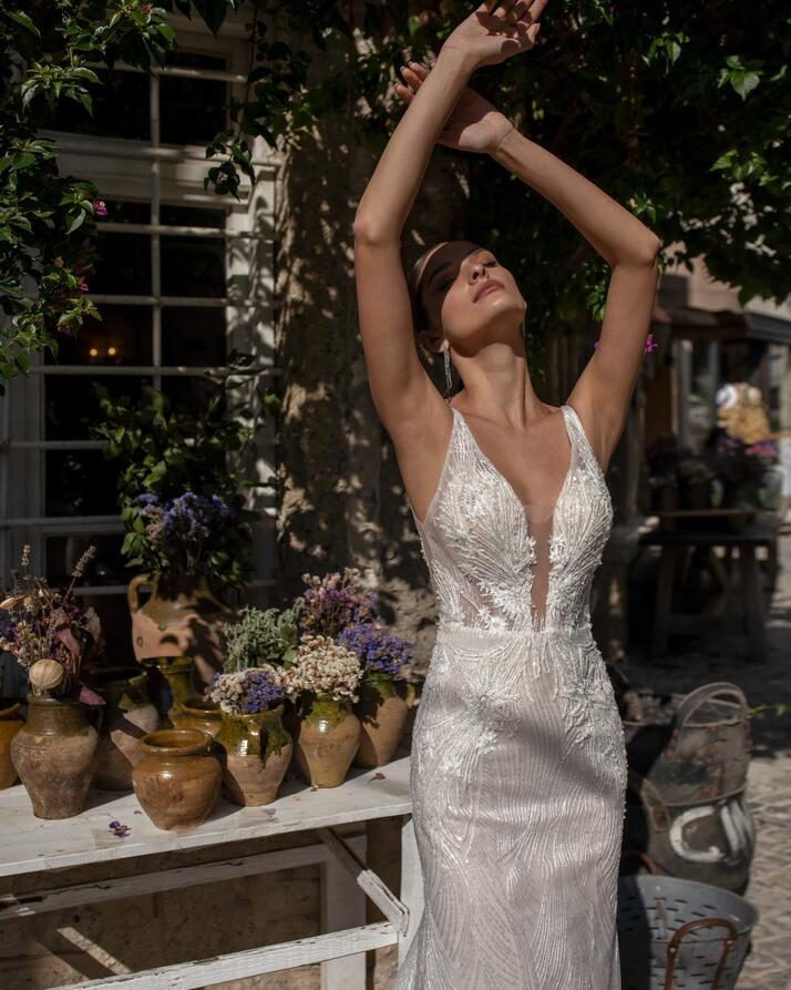 This Glasgow Embroidered V-Neck Lace Sheath Wedding Dress is a dream come true for any bride-to-be. The intricate lace detailing and elegant V-neck design create a stunning and timeless look that will make you feel like a true princess on your special day.