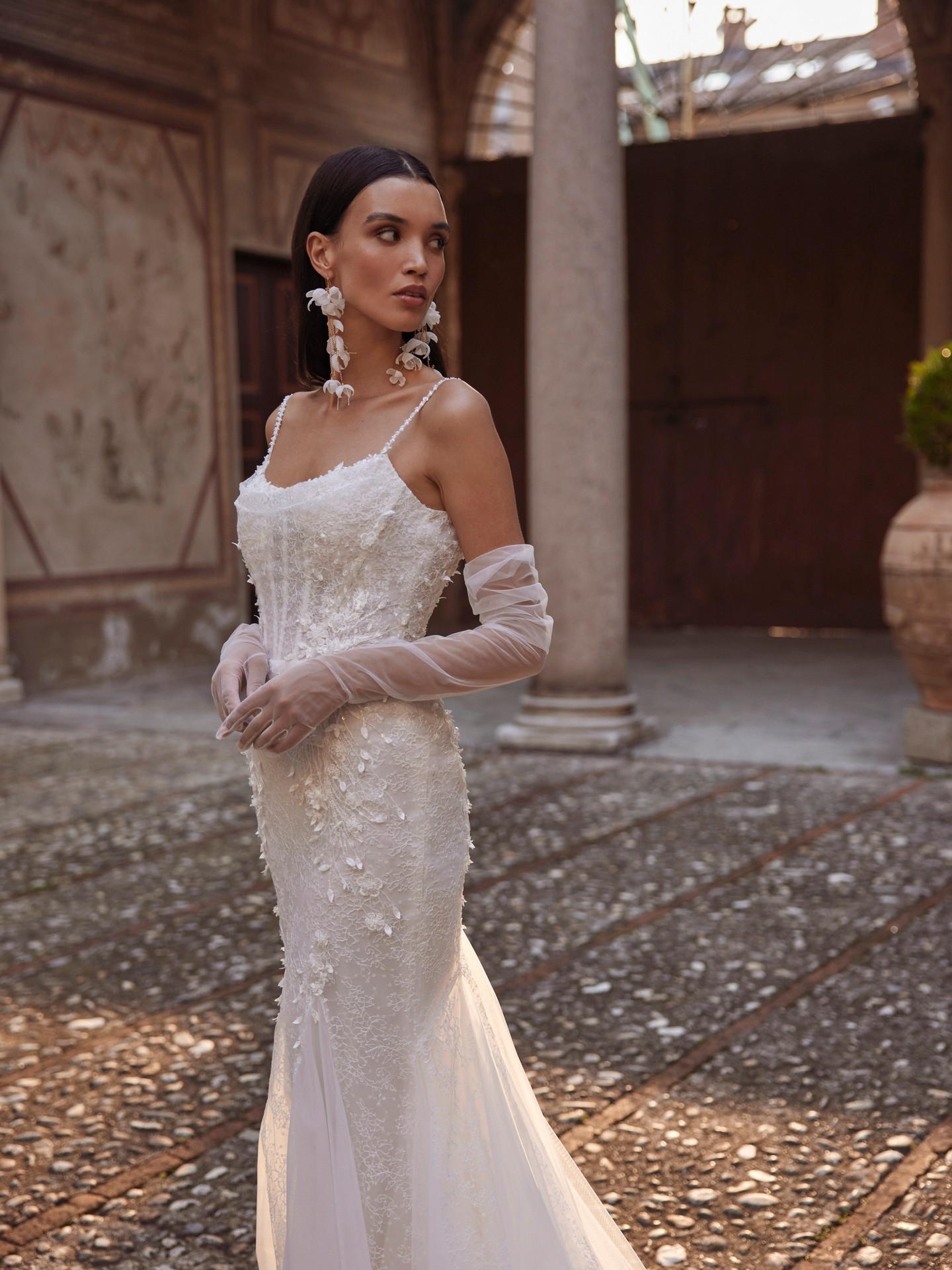 - Trumpet silhouette for a flattering, figure-hugging design