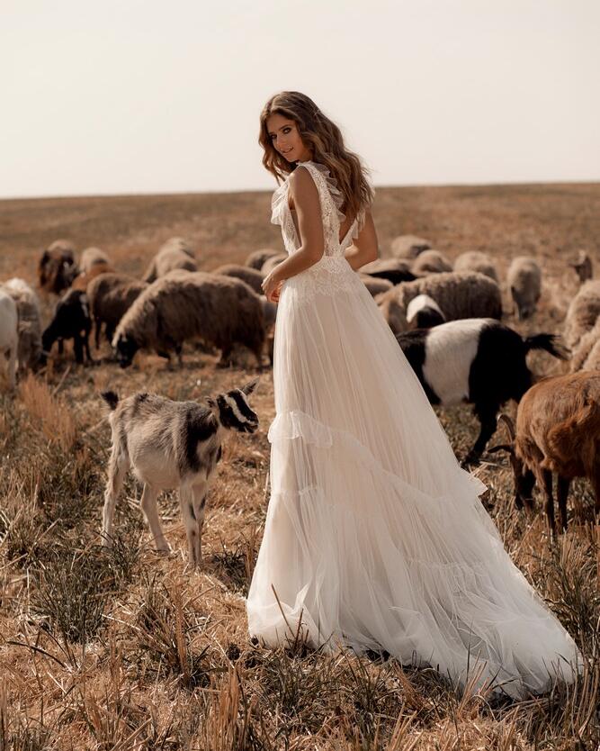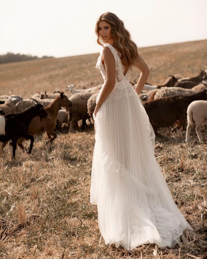 This stunning LADOGA V-Neck Lace Tulle A-Line Wedding Dress is the perfect choice for any bride looking for a romantic and elegant gown. The delicate lace detailing and flowing tulle skirt create a dreamy, ethereal look that will make you feel like a true princess on your special day.