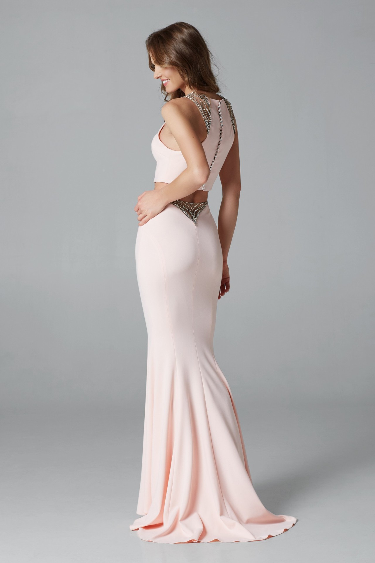 Long Peach Evening Dress #2004