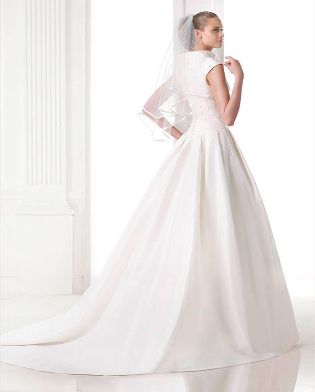 This Madra Embroidered Mikado A-Line Wedding Dress is a dream come true for any bride-to-be. The luxurious Mikado fabric feels soft and silky against the skin, making you feel like a true princess on your special day. The intricate embroidery adds a touch of elegance and sophistication, making you stand out from the crowd. The A-line silhouette flatters any body type, accentuating your curves in all the right places. The dress also features a stunning train that adds a dramatic effect as you walk down the aisle. Overall, this dress is the perfect choice for any bride who wants to feel beautiful, confident, and unforgettable on her wedding day.
