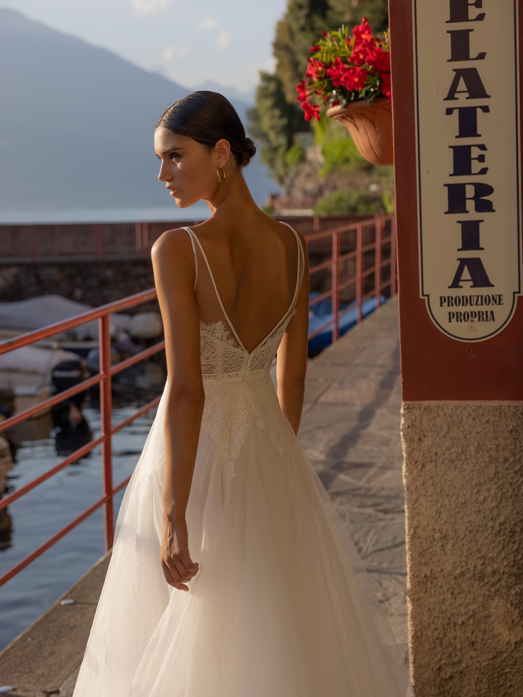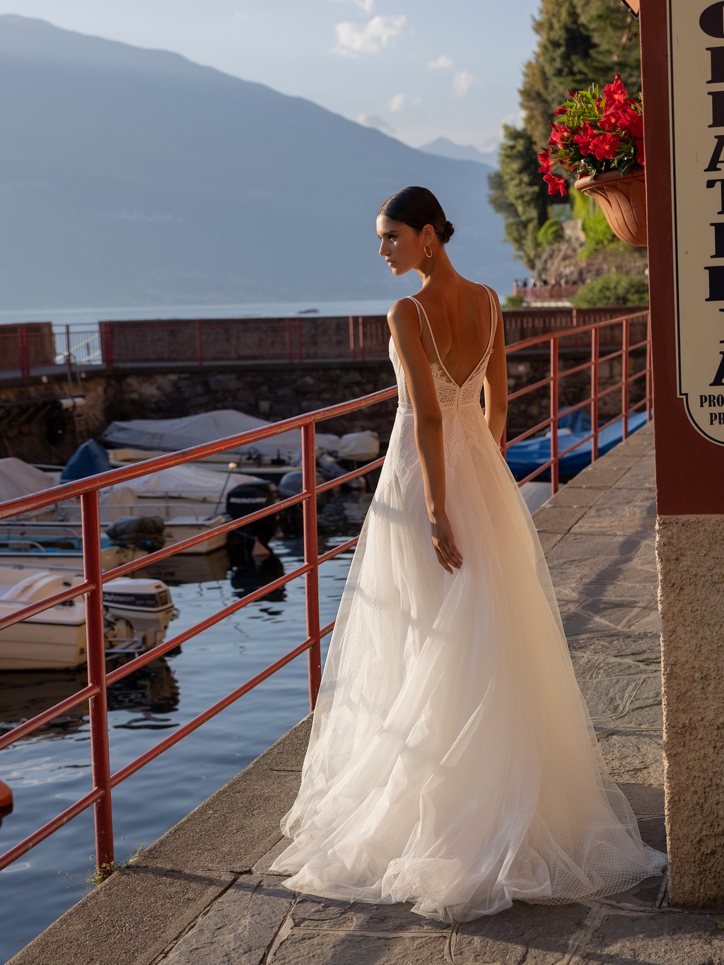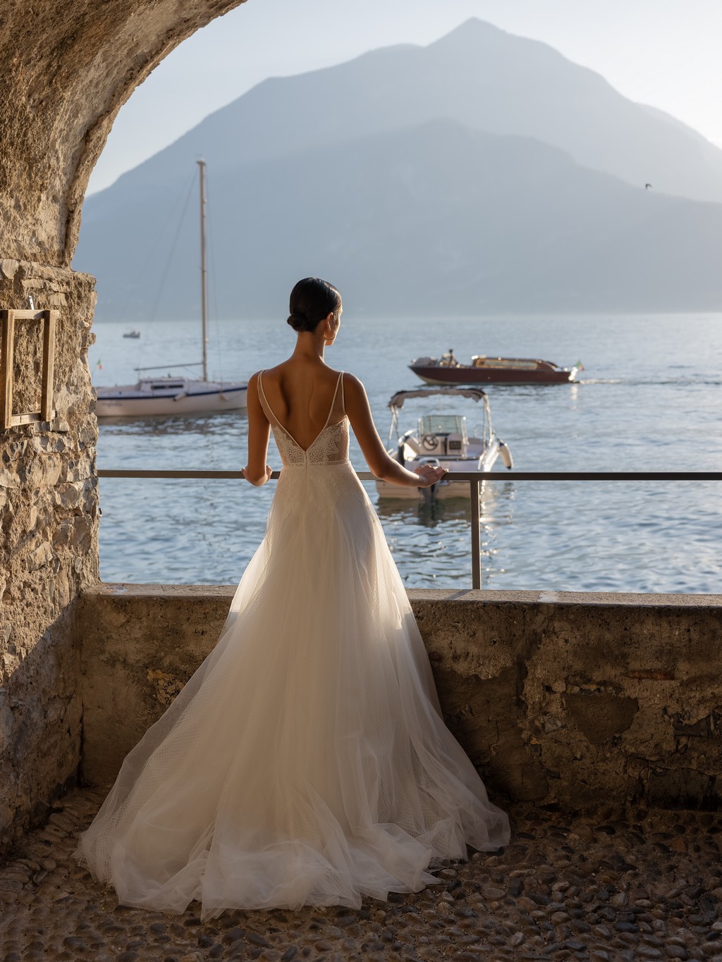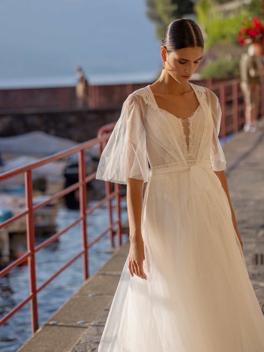 - The soft tulle overlay on the skirt creates a dreamy, ethereal effect that will make you feel like you're floating down the aisle.