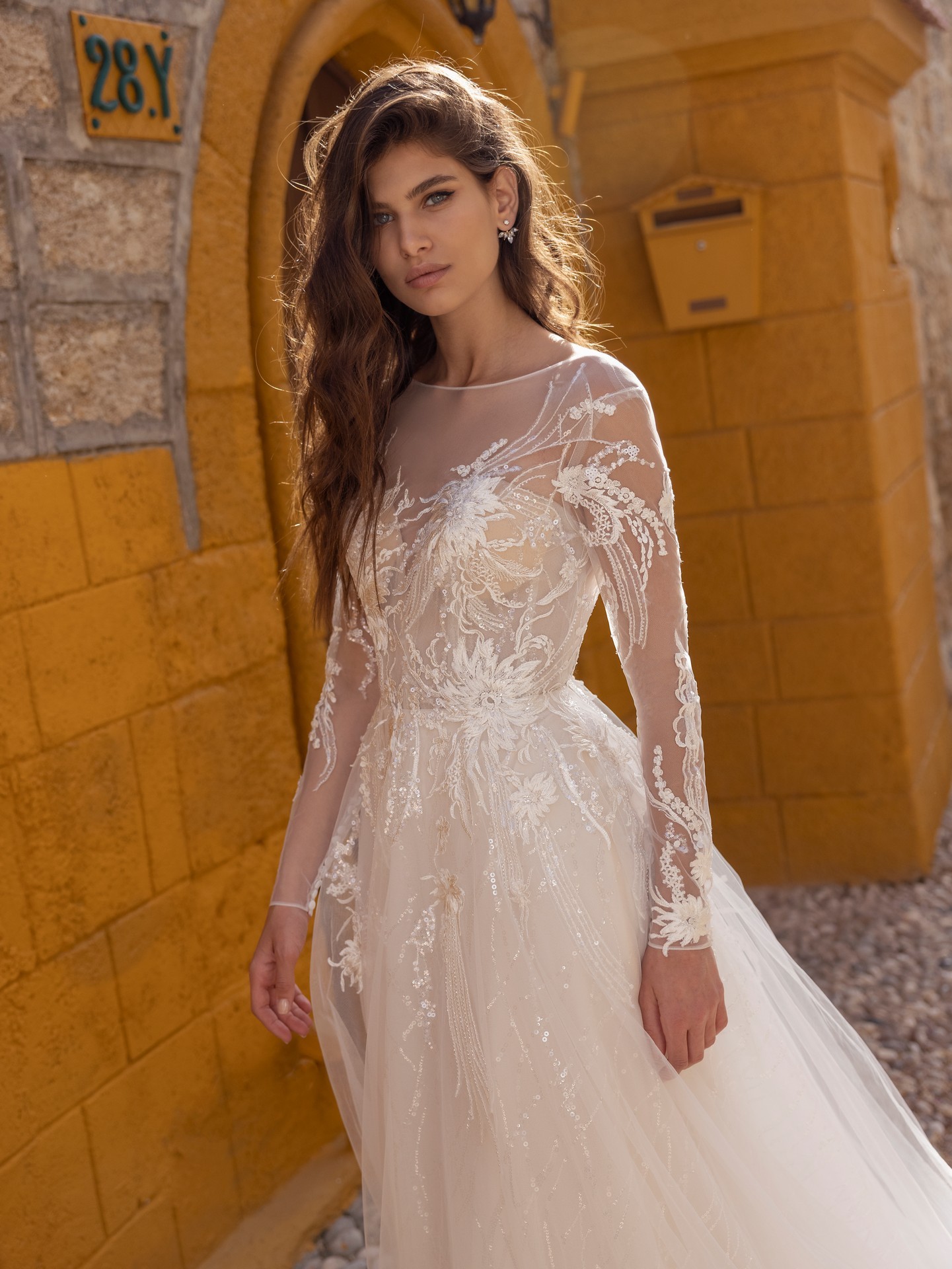 - The long sleeves provide coverage and warmth, making this dress perfect for a fall or winter wedding.