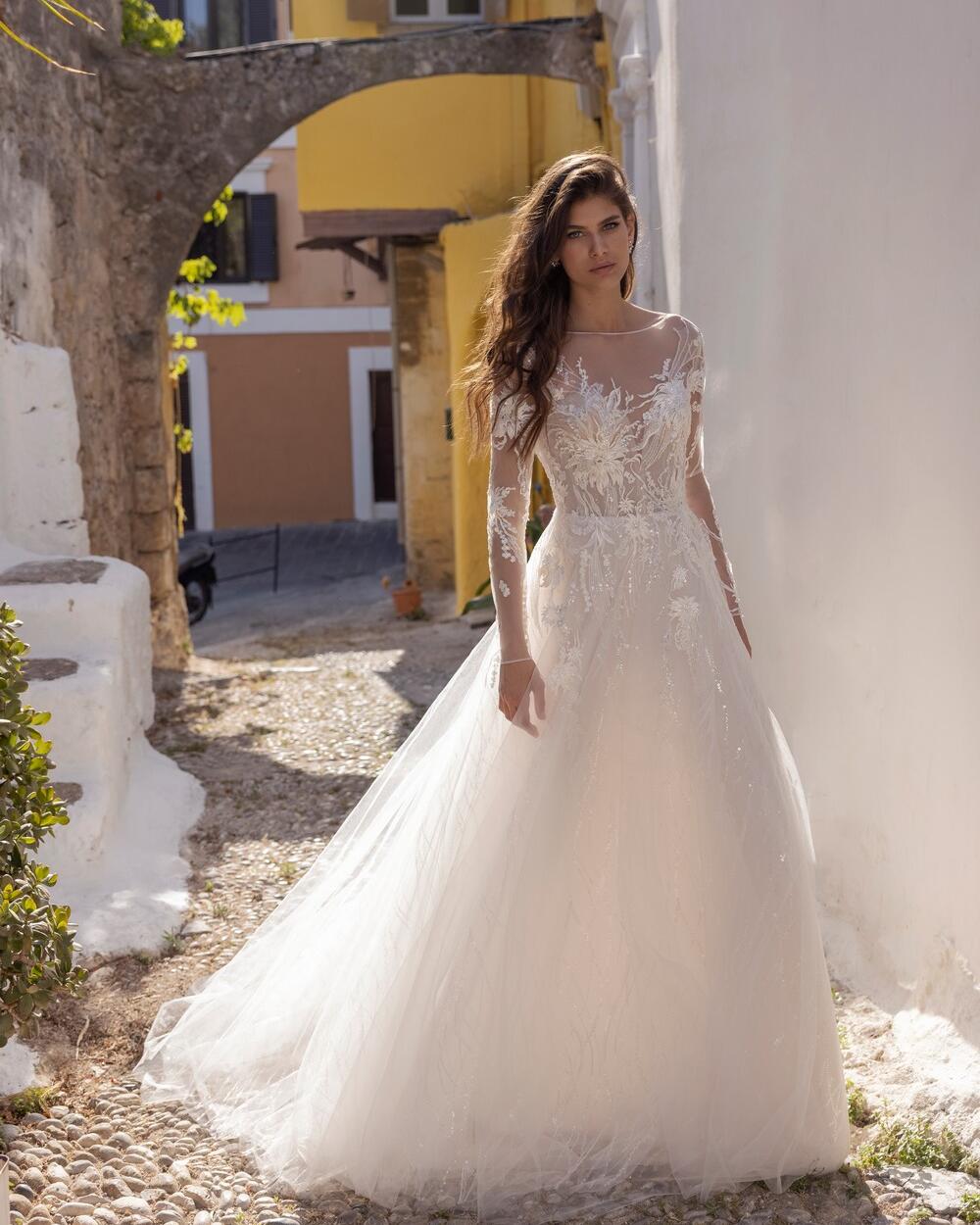 This SAVANNA Sequins Long Sleeve Tulle and Lace A-Line Wedding Dress is a dream come true for any bride-to-be. The dress is made of high-quality tulle and lace, which makes it feel soft and comfortable against the skin. The long sleeves add a touch of elegance and sophistication to the dress, while the A-line silhouette flatters any body type.
