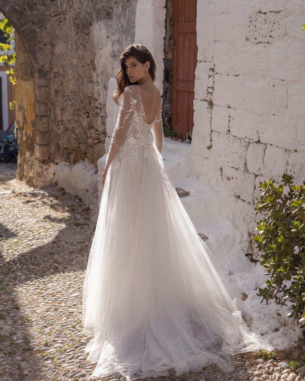 - The dress has a romantic and ethereal feel, making it perfect for a bohemian or rustic wedding theme.