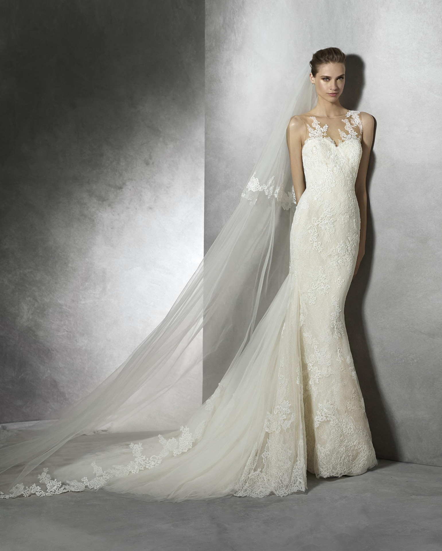 - The back of the dress is just as stunning as the front, with a sheer lace panel and delicate buttons running down the center.