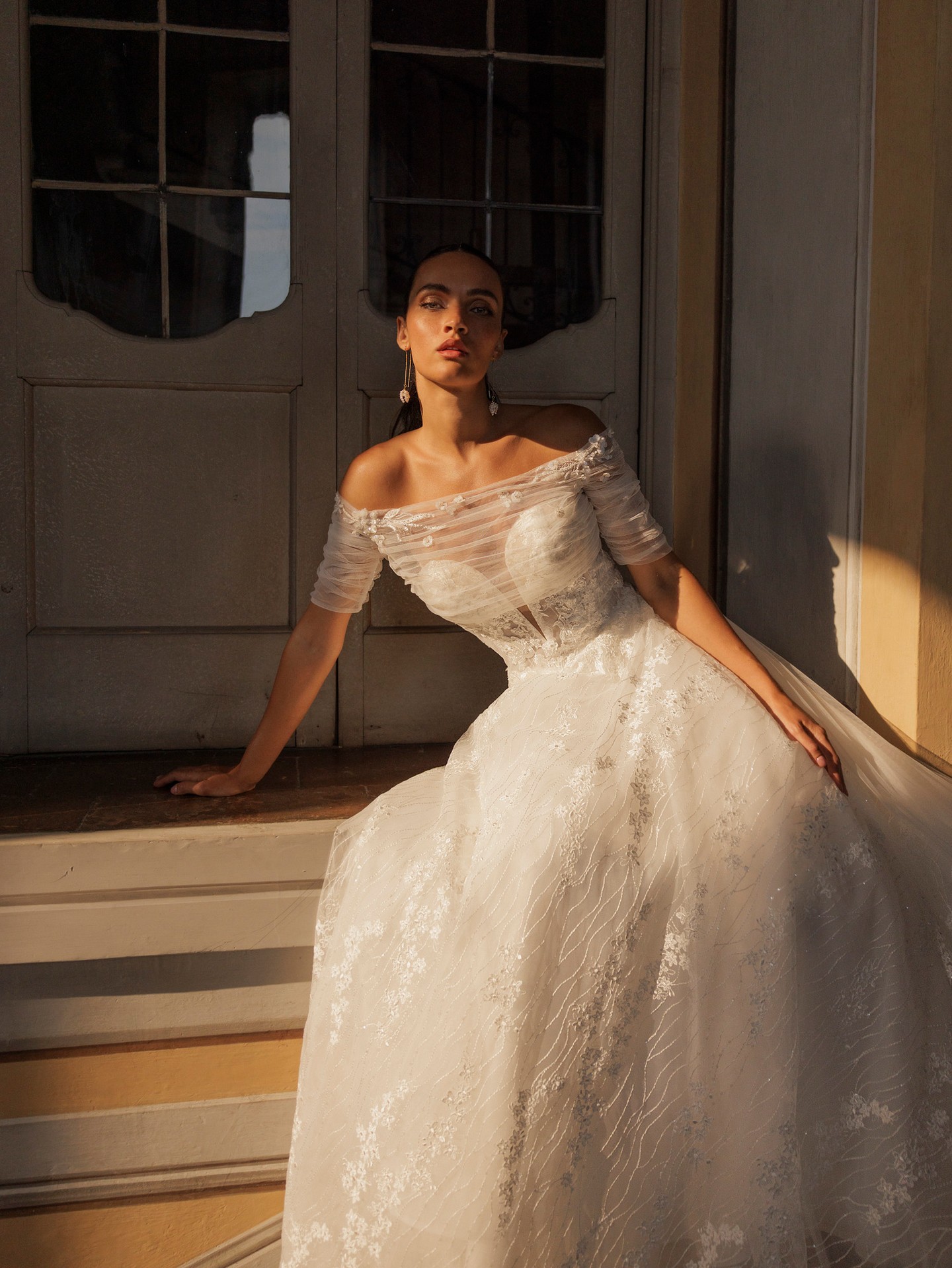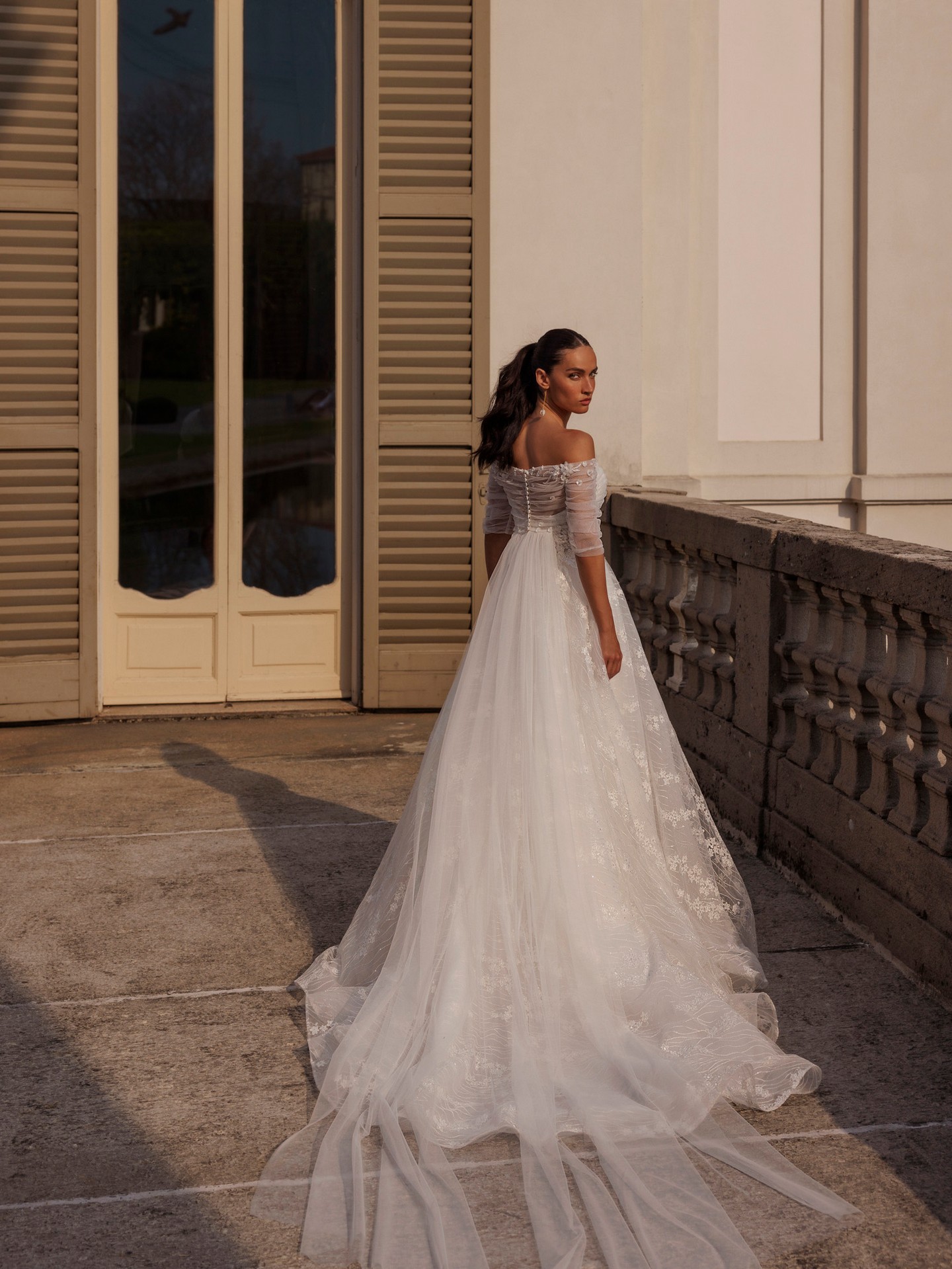 Optional off-the-shoulder tulle sleeves for a romantic second look