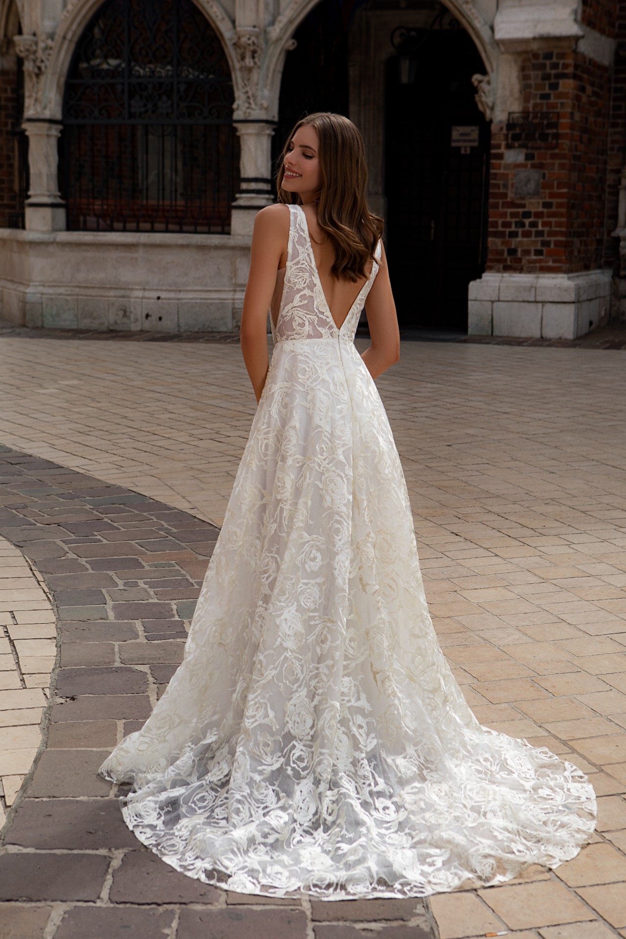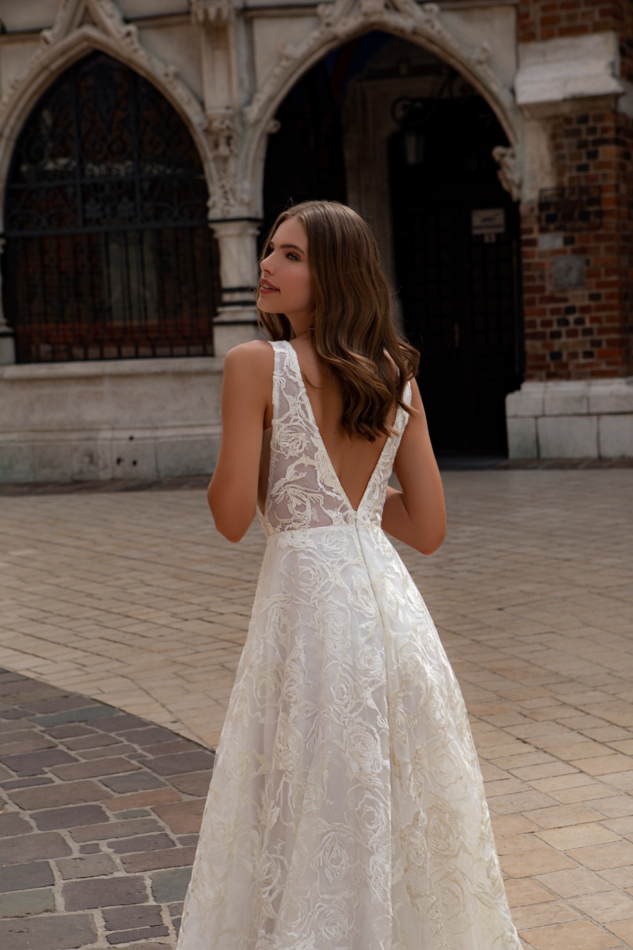 This stunning V-Neck A-line Wedding Dress #10005 is the perfect choice for any bride looking for a classic and elegant look on her special day. The dress is made from high-quality materials and features a beautiful A-line silhouette that flatters any body type. The V-neckline adds a touch of sophistication, while the flowing skirt creates a romantic and dreamy feel.
