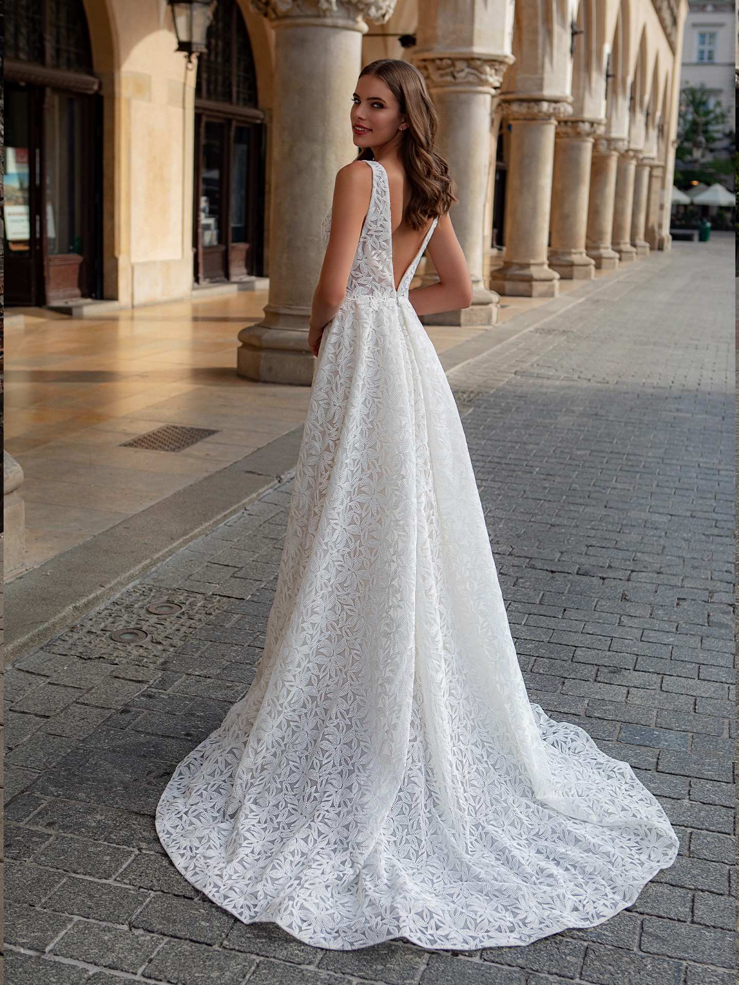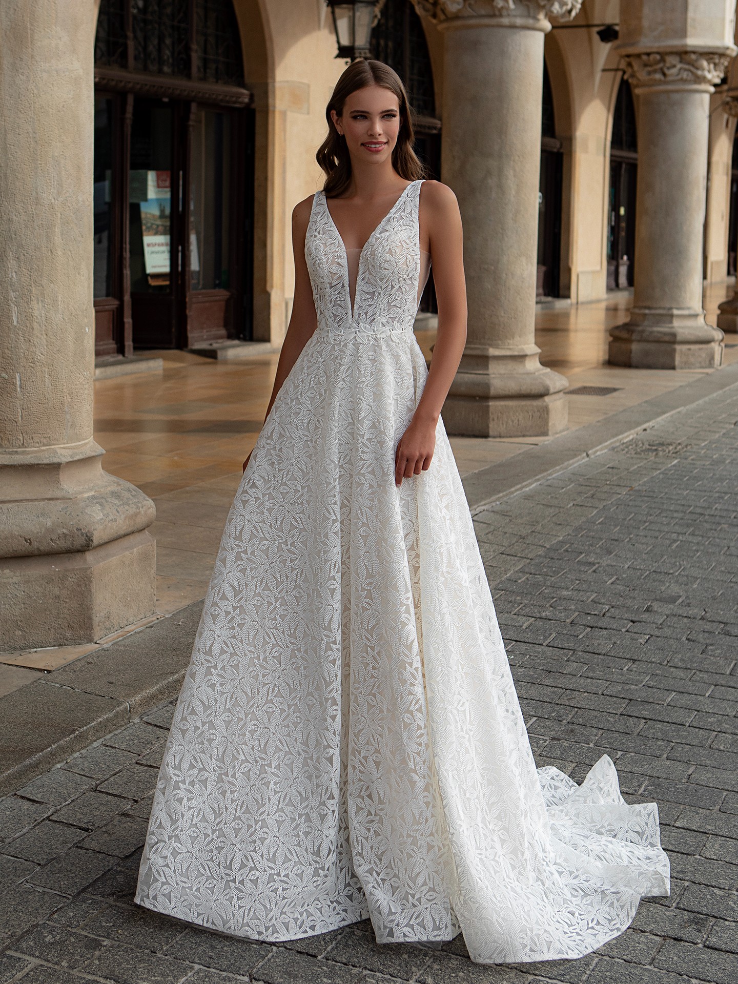 - The A-line silhouette flatters any body type, making it a great choice for brides of all shapes and sizes.